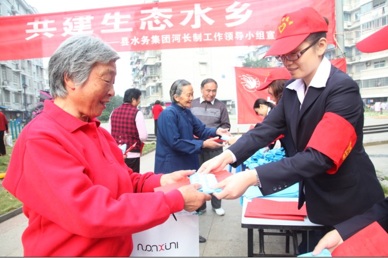 水務(wù)巾幗志愿者進(jìn)社區(qū)開(kāi)展保護(hù)河道宣傳活動(dòng)