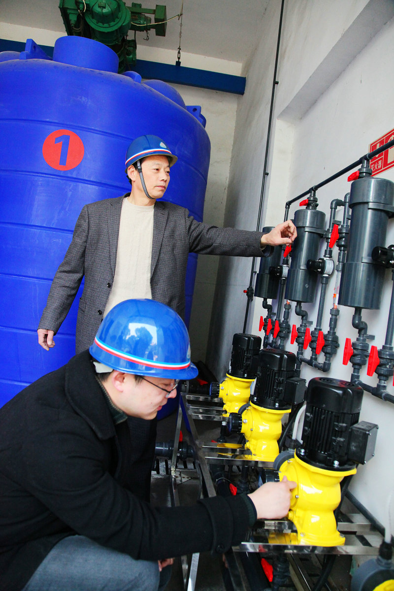 圖為工作人員正在調試加氯設備