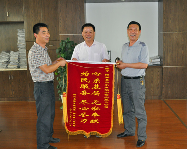 圖為供水公司安裝分公司經(jīng)理接受錦旗