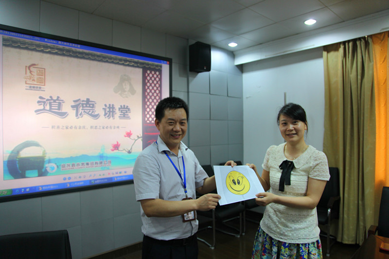 本次“道德講堂”共分聽歌曲、學模范、誦經典、發(fā)善心、送吉祥、向“德”字鞠躬敬禮等6個環(huán)節(jié)。講堂上,大家一起聆聽了《公民道德歌》,觀看了感動中國人物林俊德院士事跡報告,學習了道德經典語句“德在人先,利居人后”,并結合自身實際,分別暢談了對道德的感悟。本期講堂,還為大家準備了一個“笑臉”,希望大家在工作中、生活中保持微笑,用笑臉迎接工作、迎接生活、迎接身邊每一個人。最后,講堂在大家向“德”字鞠躬敬禮中落下帷幕,使干部職工接受了一次道德的感化與洗禮。