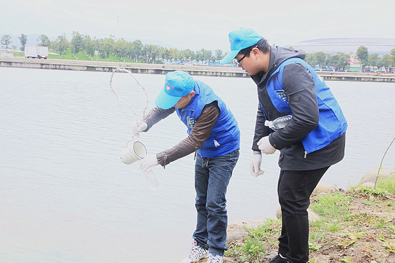 一是河道清撈保潔。隨著河道水質的不斷提升、河岸環境的不斷改善,東方山水對岸綠化帶成了垂釣愛好者們的常去之處,也因此留下了不少生活垃圾,志愿者們使用火鉗、抄網等清撈工具對河面河岸進行保潔工作。二是水質檢測化驗??聵蚬┧镜闹驹刚邆儗ρ睾訋滋幣欧趴诟浇乃w進行抽查取樣,并做好標識,帶回公司由專業人員從pH值、氨氮、總磷、高錳酸鹽、COD等多方面進行水質檢驗。三是資料發放宣傳。志愿者們來到坂湖公園,向市民發放節約用水倡議書,呼吁大家要增強城市節水意識,積極響應省、市、區政府“五水共治”的號召,共同構建資源節約型城市。