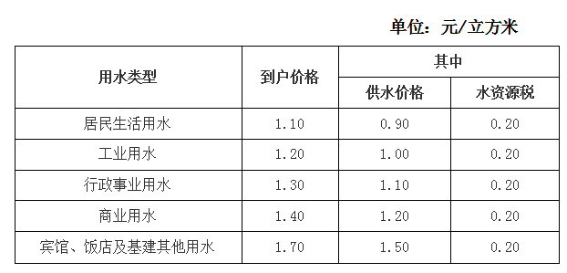 王壇、稽東鎮(zhèn)自來水水價收費標準